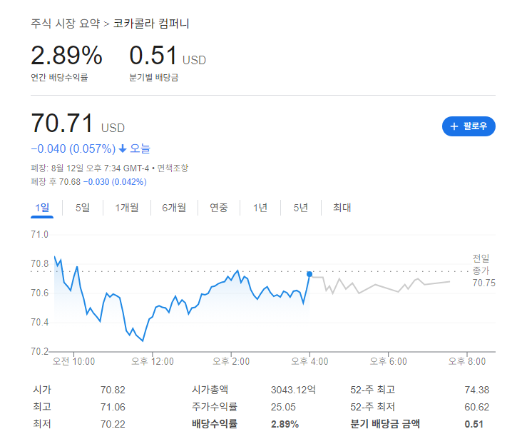 만약 코카콜라 주식에 1억을 투자하면 배당금은 얼마나 받을 수 있을까요?